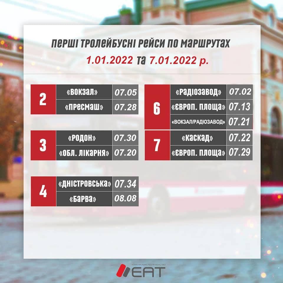 У КП “Електроавтотранс” ІФ оприлюднили графік роботи громадського транспорту на новорічно-різдвяні свята.