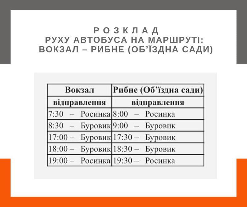 - Вокзал – об`їзна с. Рибне (дачі);