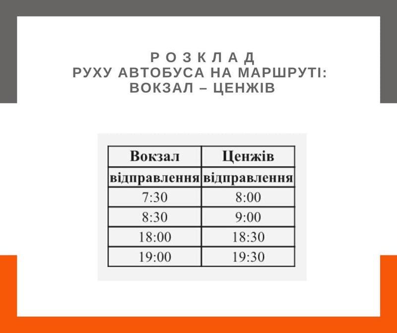 - Вокзал – с. Ценжів;