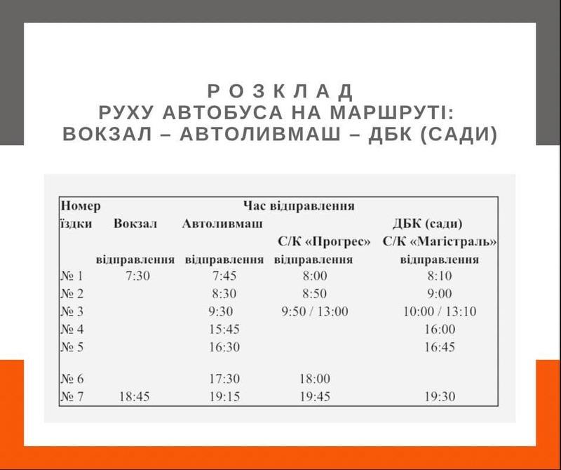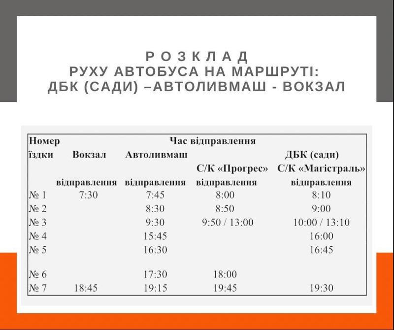- Вокзал – Автоливмаш – ДБК (сади);