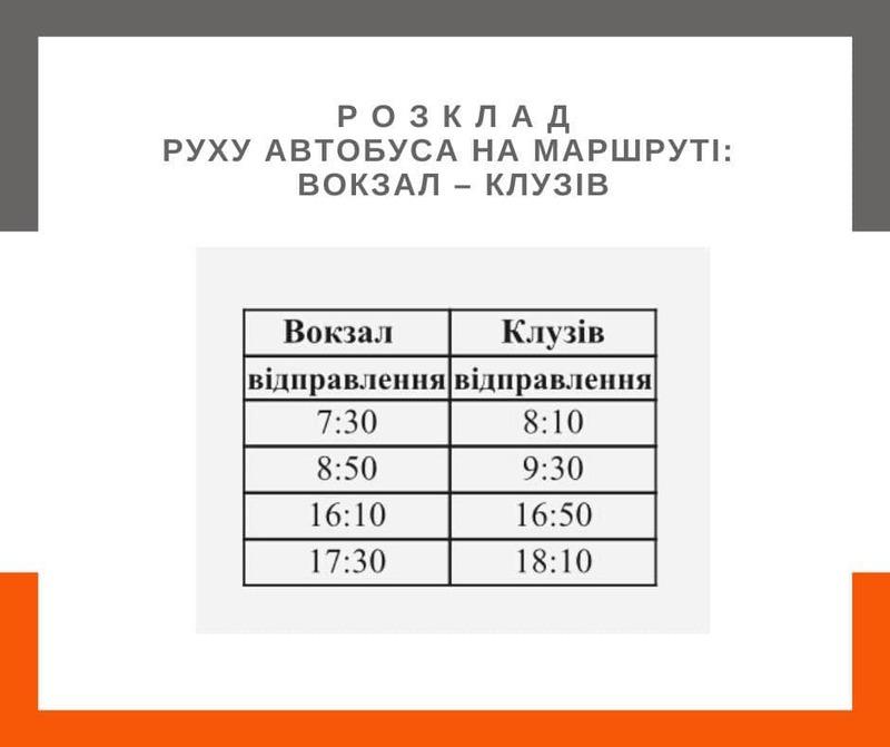 - Вокзал – с. Клузів;