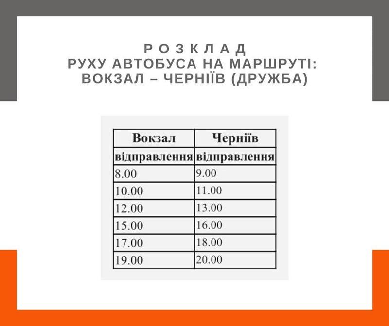 - Вокзал – с. Черніїв («Дружба»);