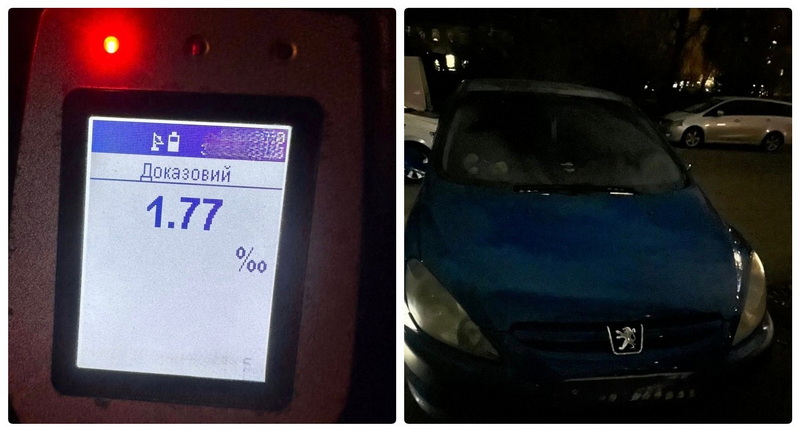 Під час спілкування з 32-річною кермувальницею Peugeot інспектори виявили ознаки алкогольного сп’яніння. Освідування підтвердило — у її крові 1,77 проміле алкоголю.