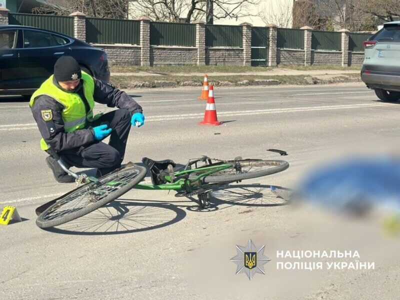 Велосипедист рухався попереду автомобіля та під час проїзду перехрестя змінив напрямок руху.