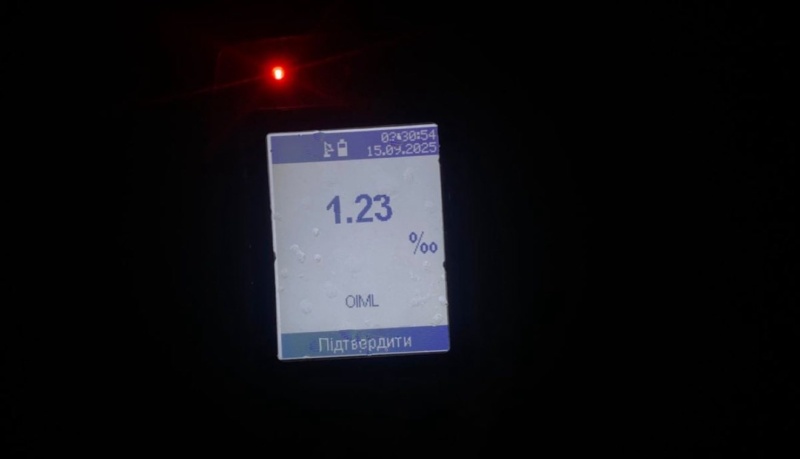 Освідування на місці показало 1.23 проміле алкоголю в організмі.