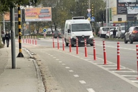 У Франківську на Набережній стовпчиками-делініаторами відокремили велосмугу від проїжджої частини