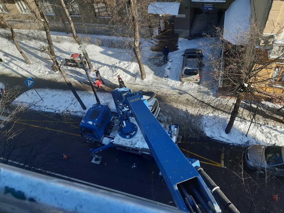 “На виконання протокольного доручення міського голови черговий наряд КУ “ІФ МАРС” проводить очистку будинків центральної частини міста від крижаних бурульок та снігових наростів”, – йдеться у повідомленні.