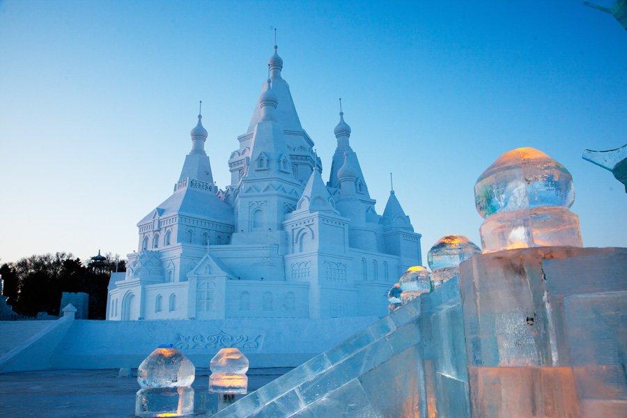 Для будівництва архітектурного комплексу фестивалю з ріки Сонгуа, яка протікає через Харбін, було добуто десятки тисяч льодових блоків. Спорудження фестивальних комплексів тривало кілька тижнів.