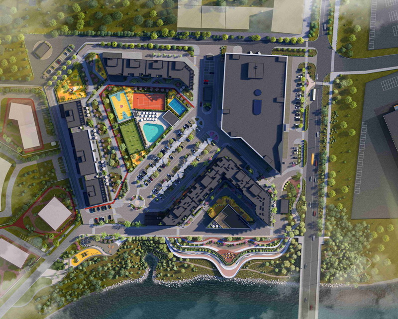 На території простору є все необхідне для комфортного життя, відпочинку та роботи, включно зі школою, медичним центром, ресторанами, кафе, офісними приміщеннями, коворкінгом, спортивними майданчиками, спортзалами, відкритими кінотеатрами й басейнами.