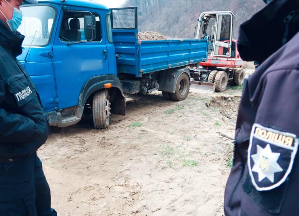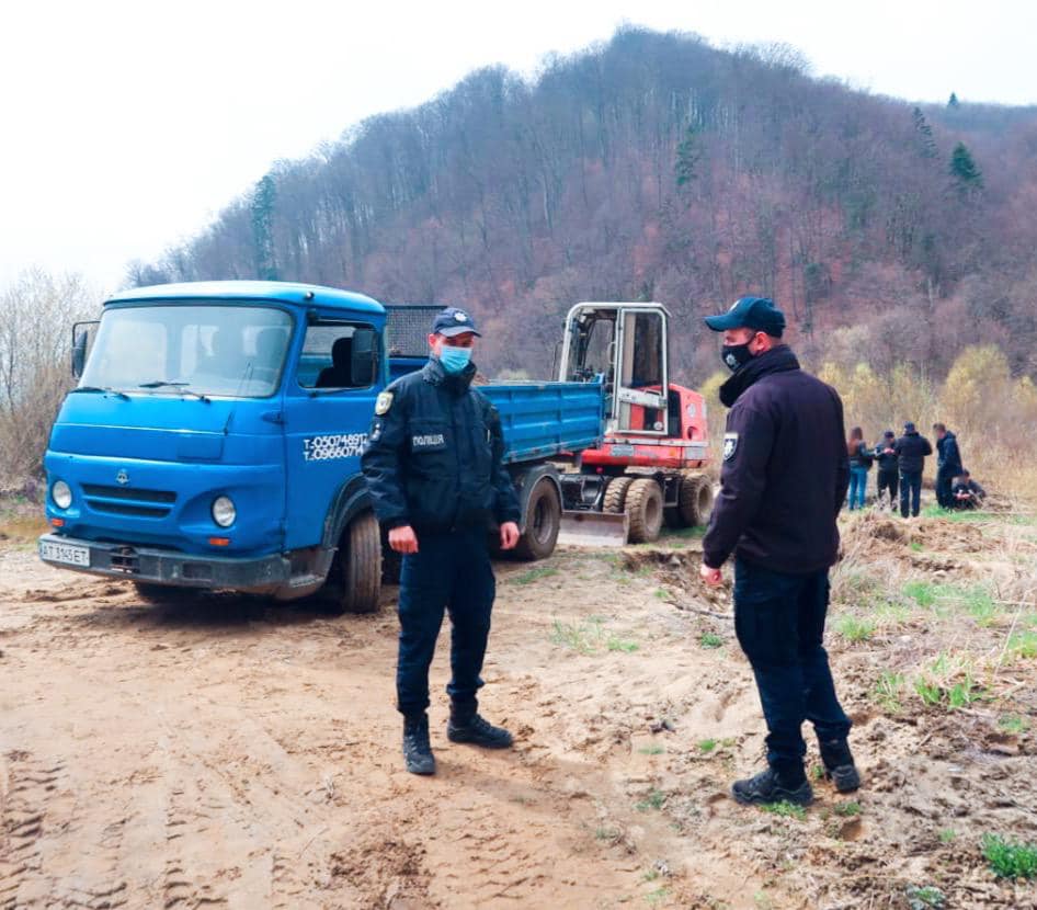 У понеділок, 19 квітня, поблизу річки Свіча у селі Новоселиця Вигодської територіальної громади патрульні поліцейські побачили навантажувач та вантажівку.