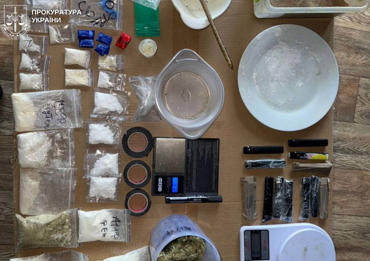 Крім того, в ході проведених обшуків у зловмисника виявлено інші психотропні речовини та наркотичні засоби, які він зберігав з метою подальшого збуту, зокрема PVP (понад 150 г), 4-MMC (понад 9 г), амфетамін (69 г), кокаїн (16 г), плодові тіла грибів із псилоцином (1,8 г), різні види канабісу загальною вагою понад 429 г.