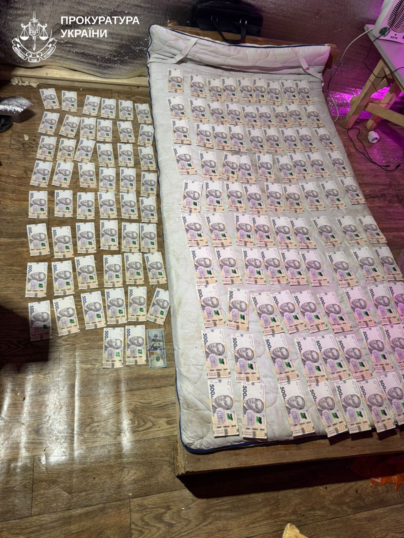 Під час обшуків у будинку та автомобілі підозрюваного виявлено та вилучено понад 130 рослин коноплі, пакети з психотропною речовиною PVP та канабісом, ваги, пакувальні матеріали, 70 тис. грн і 100 доларів США, автомобіль, який використовувався у злочинній діяльності.