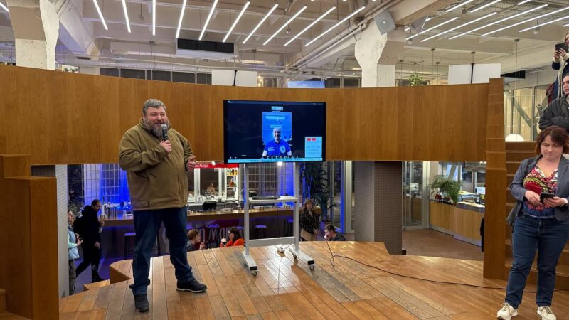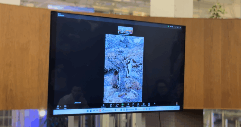 До відкриття виставки доєднався керівник 30 української антарктичної експедиції Олександр Полудень. За допомогою онлайн-трансляції він зі станції «Академік Вернадський» показав публіці Антарктику — шари льоду, снігу й пінгвінів.