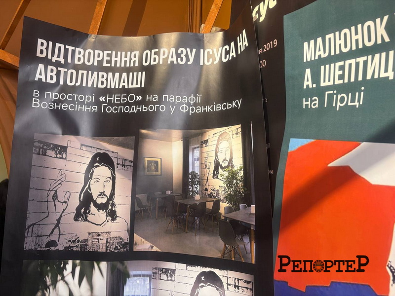 На Гірці біля моста є церква, там збудували катехитичну школу. І там з’явилося зображення на 2,5 – 3 м. Але воно закрите, не на вулиці. Тож ті, хто перебуває за межами школи, його не бачать. Тож ми вирішили його презентувати публіці, – каже Ярема Стецик. – Відтворення образу Ісуса створили на Автоливмаші, а зараз він закритий. Але цей образ уже був відтворений у багатьох різних середовищах. Колись була кав’ярня “НЕБО”, тепер з цією назвою існує гарний простір.