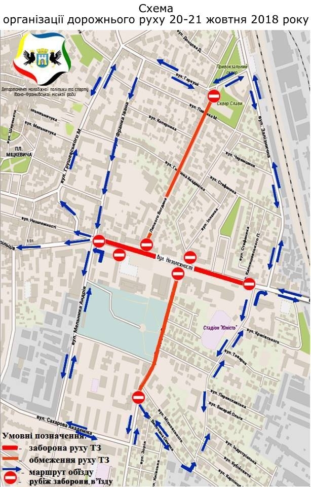Тому обмежили рух транспорту середмістям. Зокрема, з 08:00 до 17:00 год закрили проїзд по вулиці Незалежності, Лепкого та Мельника .