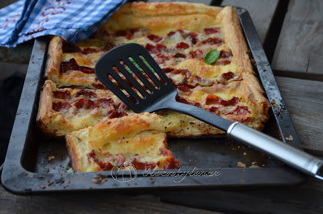 Цей пиріг добре смакує і як самостійна страва, і як додаток до легкого салату чи різноманітних перших страв чи як закуска до пива. Словом, це універсальна страва. Крім того, не потребує надмірних зусиль у приготуванні.