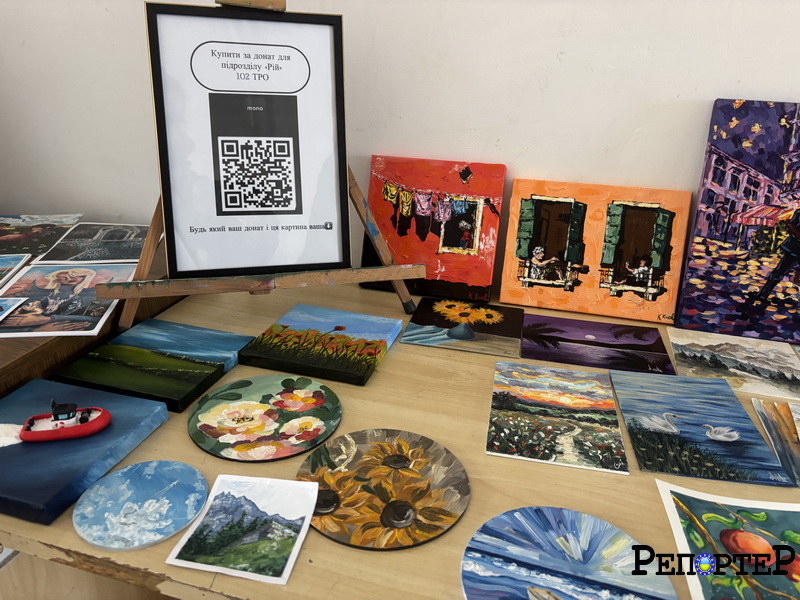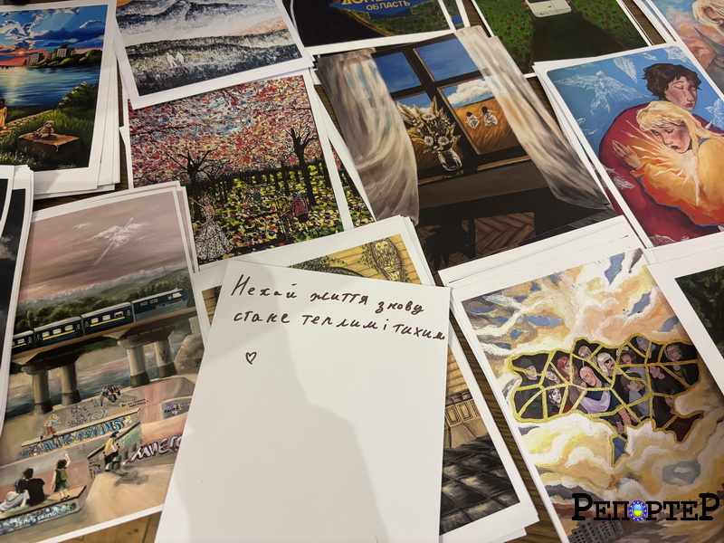На виставці за донат можна придбати листівки та мінікартини з побажаннями від юних авторів. Усі гроші підуть для підрозділу «Рій» 102 бригади тероборони. Саме тут воюють батько та брат кураторки виставки Соломії Дзюби.