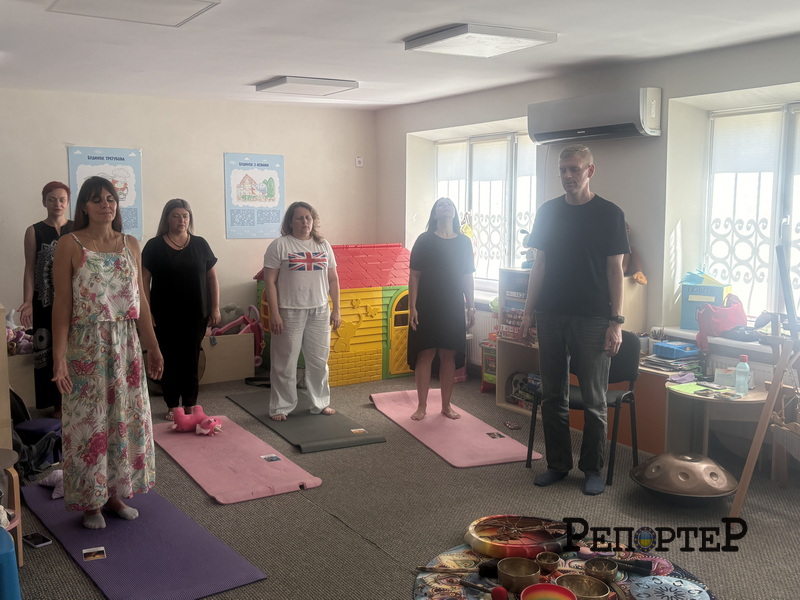 Заняття влаштувало подружжя з Миколаєва – ветеран ЗСУ Артем Корольов та його дружина Наталія Корольова, на запрошення психологині центру Лілії Борисової. За словами Артема, займатися звукотерапією вони почали десь три місяці тому, коли у нього почалися проблеми зі здоров’ям через перебування на фронті. Тоді помітили, що лікування звуками допомагає.