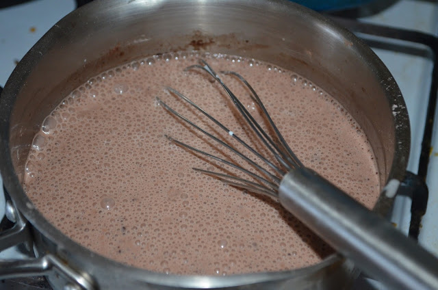 Пересипаємо суху суміш в каструльку, заливаємо її з 1 скл. молочно-вершкової суміші, ретельно вимішуємо до повного розчинення крохмалю.