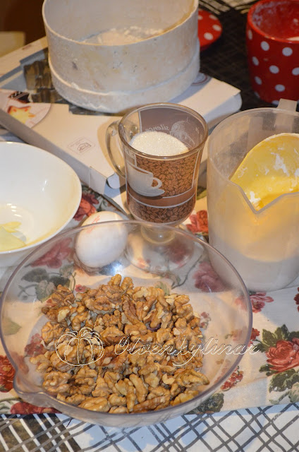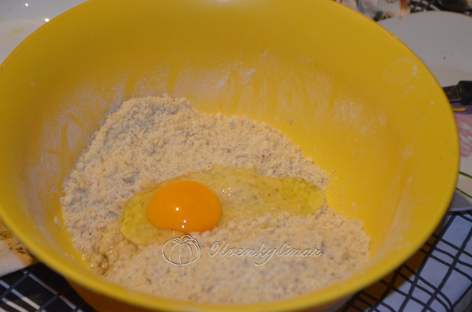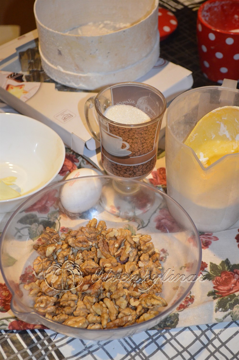 Інгредієнти. 1,5 склянки борошна, 0,5 склянки цукру, 100 г грецьких горіхів, 60 г. вершкового масла, 1 яйце, 2 ст. л. сметани.