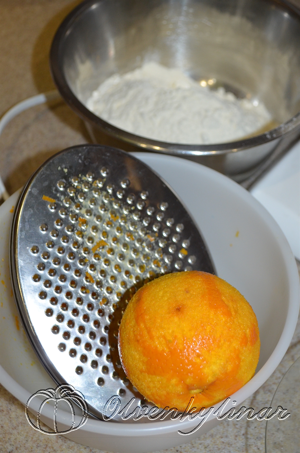 До масляно-яєчної суміші додати борошно, цедру апельсина, йогурт, злегка збити міксером, щоб з’єднати усі складники.