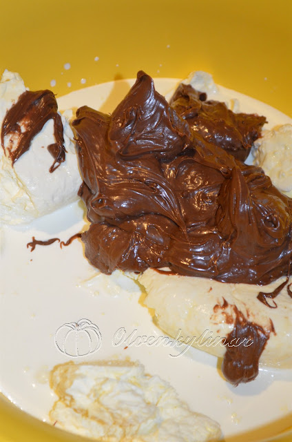В мисці з’єднуємо сир, вершки, згущене молоко і “Нутелу”, збиваємо блендером до однорідної кремової маси.