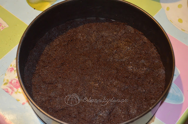 Форму розміром 22 сантиметри вистелити пергаментом. Печиво змолоти в крихту.