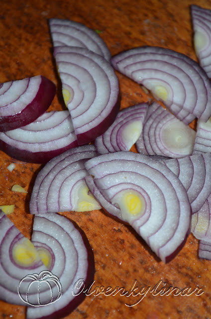 Цибулю порізати півкільцями.
