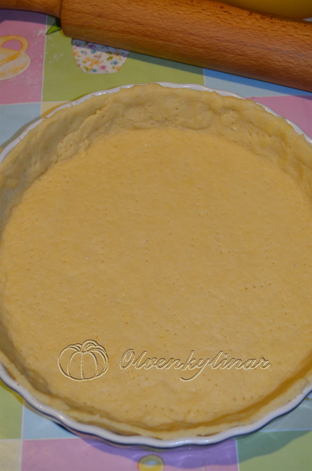 В просіяне борошно, додати цукор, сіль, порізане кубиками масло. Швиденько перетерти руками до утворення вологої крихти, додати яйце та воду і замісити тісто.