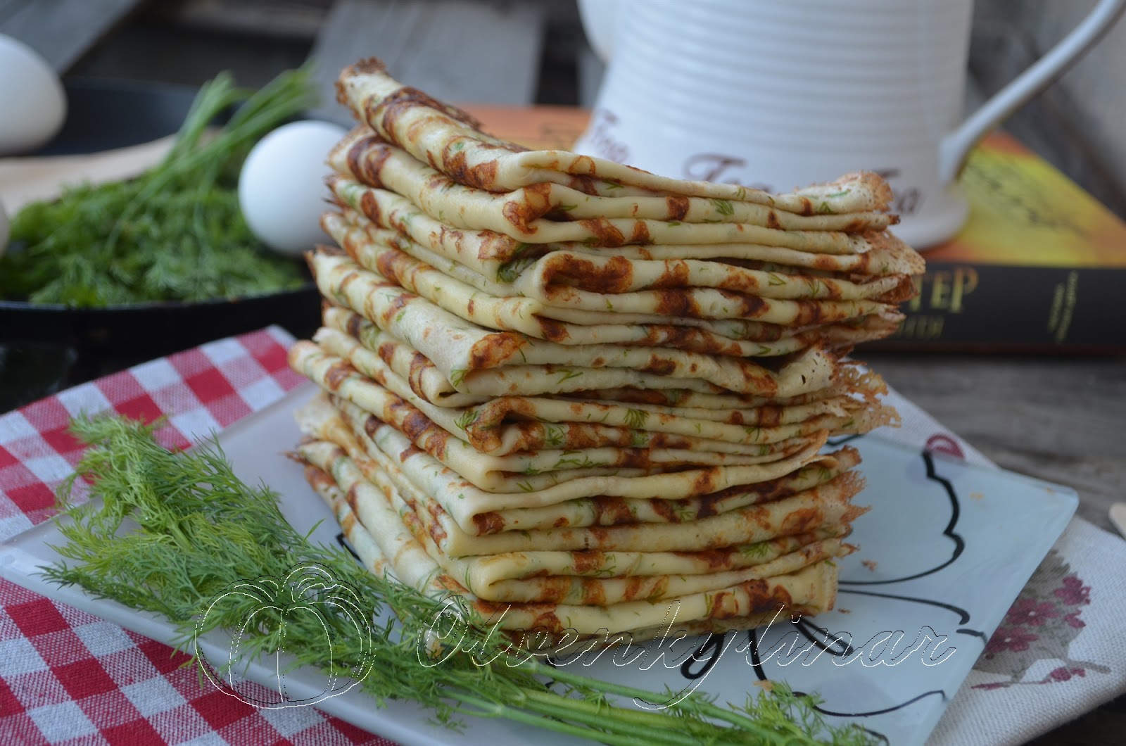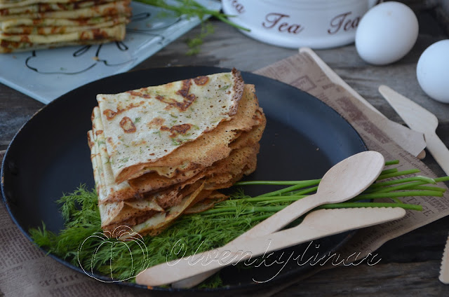 Дуже смачні пікантні, закусочні налисники. Гарне доповнення до смачної зупки чи домашнього паштету. Хоча такі налисники добре смакують і без нічого.