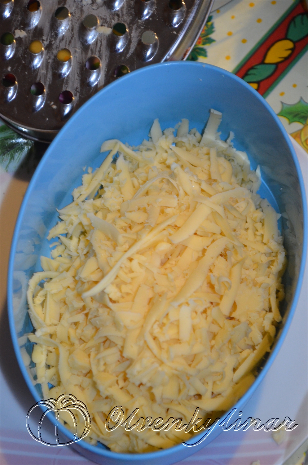 Додати до тіста олію, твердий сир та кріп, вимішати.