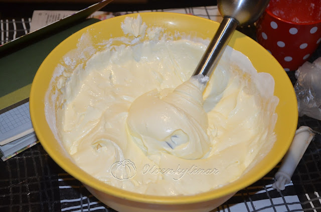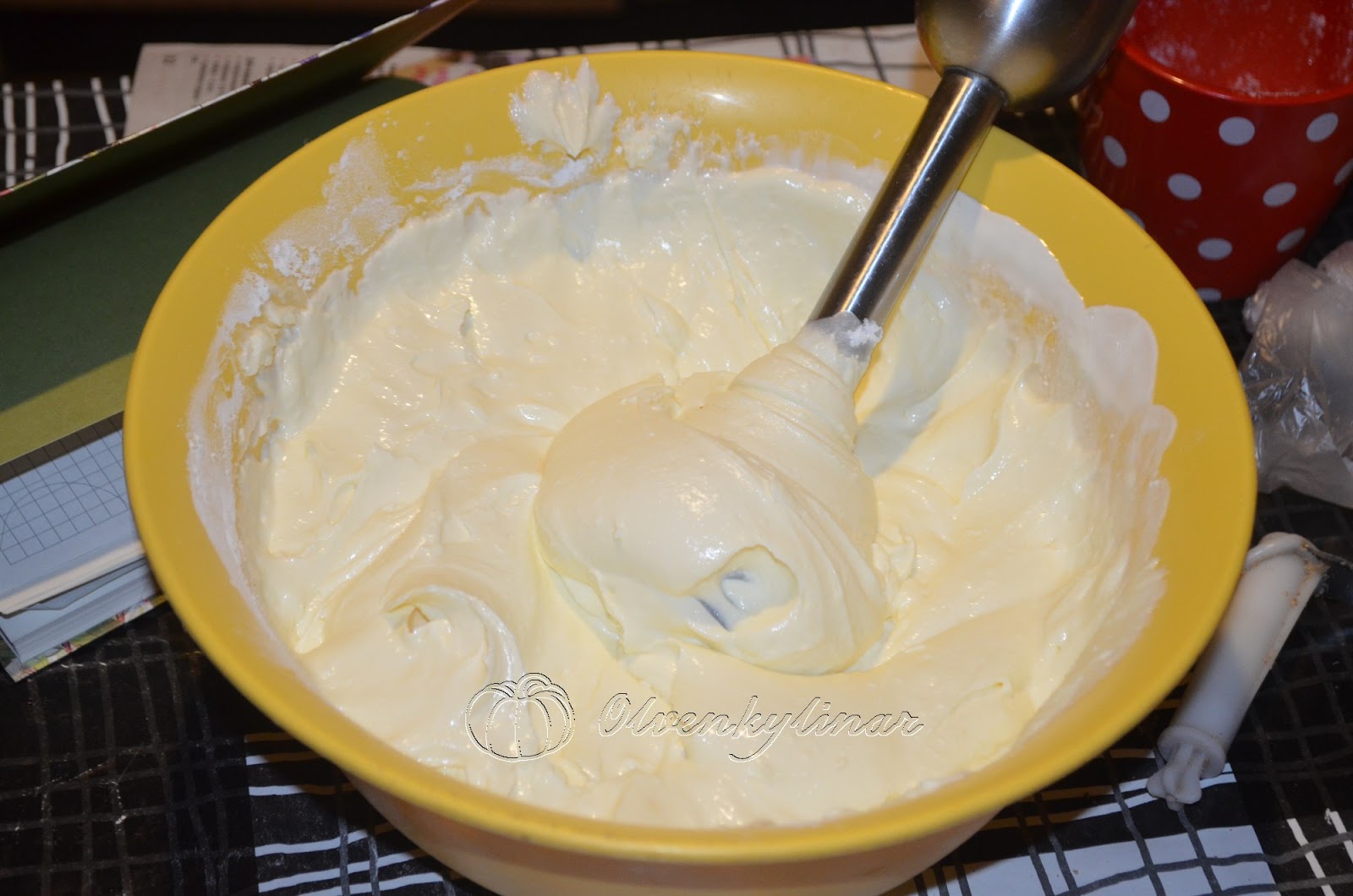 В миску викласти сир, вершки, цукор, яйця, лимонний сік, лимонну есенцію, ванільний цукор, збити блендером до однорідної суміші. Додати крохмаль – ще раз збити.