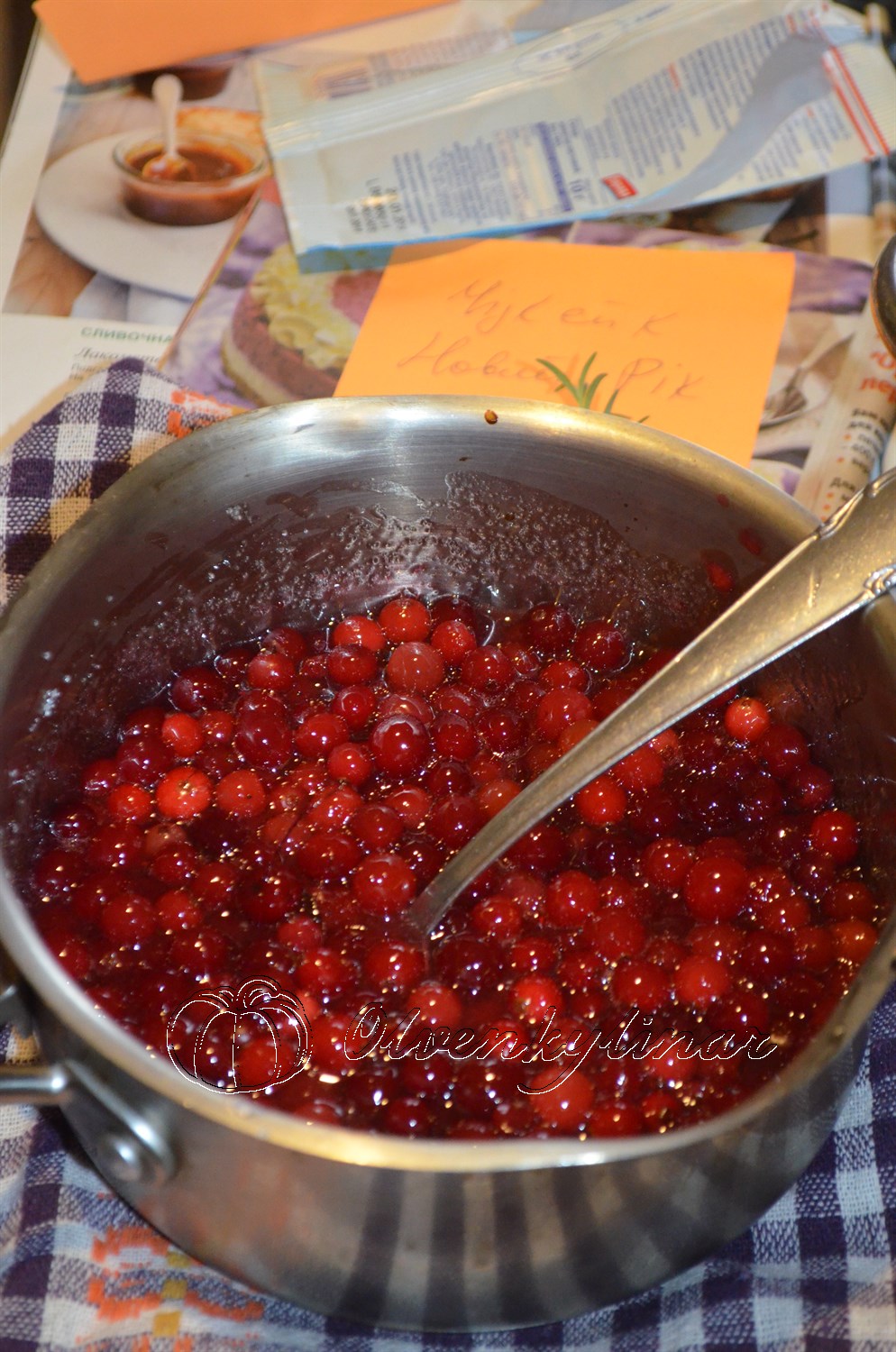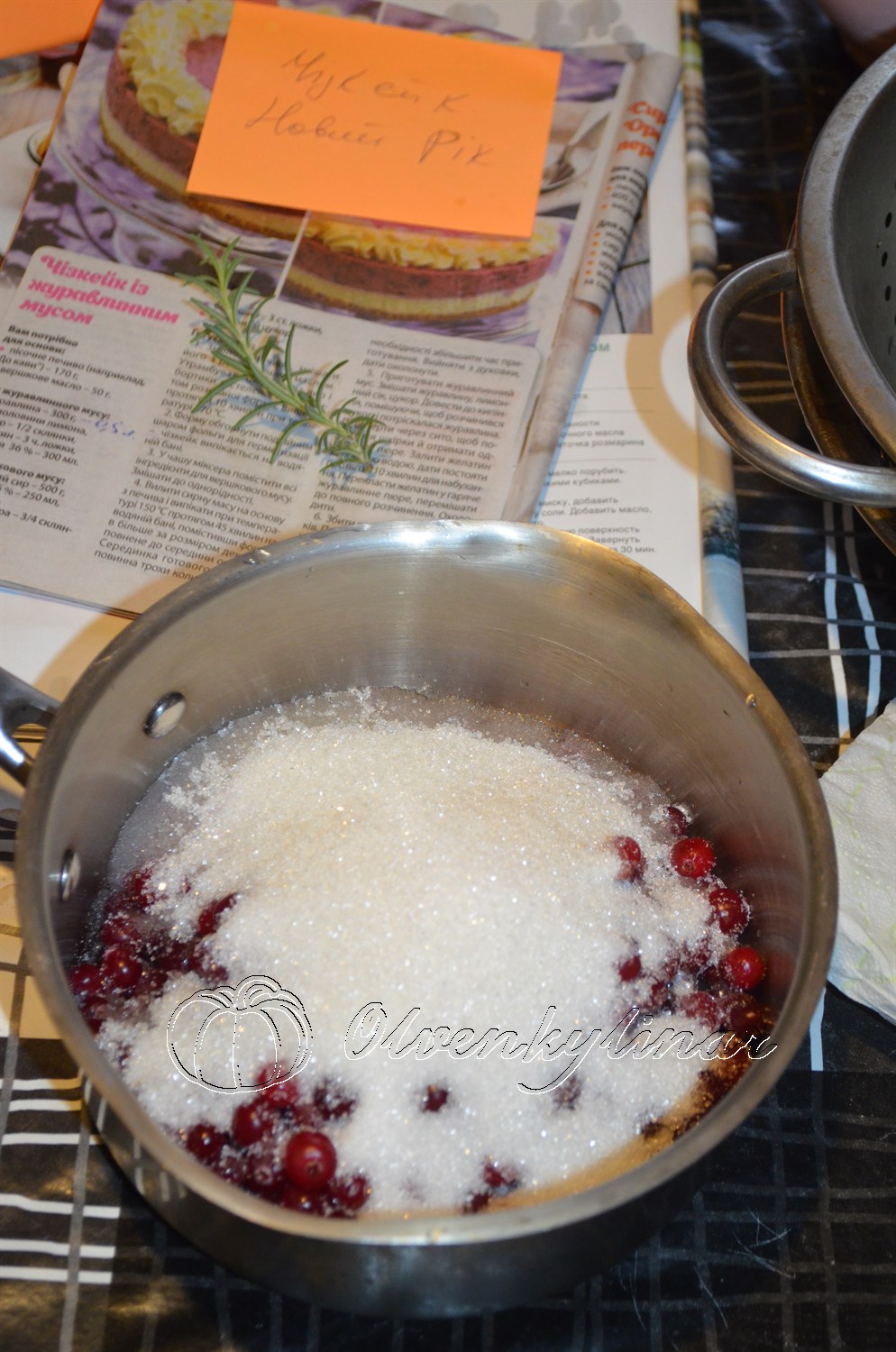 Сирник повністю охолодити, але не витягати з форми. Найкраще залишити на ніч, а вже вранці приступити до приготування мусу. Журавлину ретельно промити.