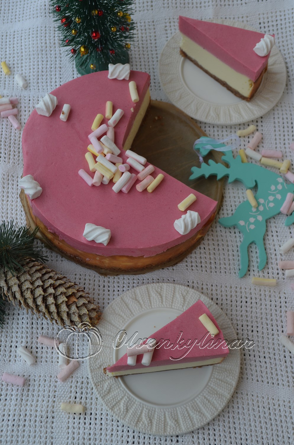 Мені дуже подобається як цей сирник виглядає – гламурний і дуже апетиний. Як рожева симпатична кругла хмаринка, аж шкода таку красу їсти. До слова, тут не використано жодних штучних барвників, лише натуральні складники.