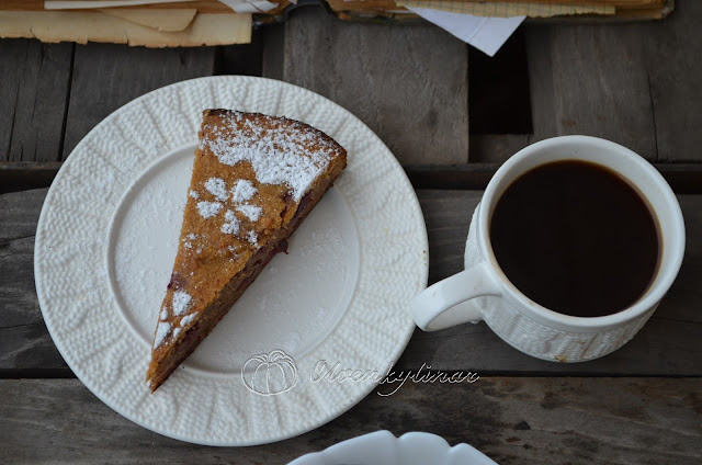 А тепер трішки про смак, навіть з самих складників було зрозуміло, що це доволі незвичний торт. Так воно і є, втім, він доволі смачний. Тут яскраво виражений горіховий смак. В цей торт я точно не б давала вишневе варення чи консервовані вишні, лише свіжі чи морожені, адже вони дають дуже цікаву кислинку, яка гармонійно поєднується з солодким тістом.