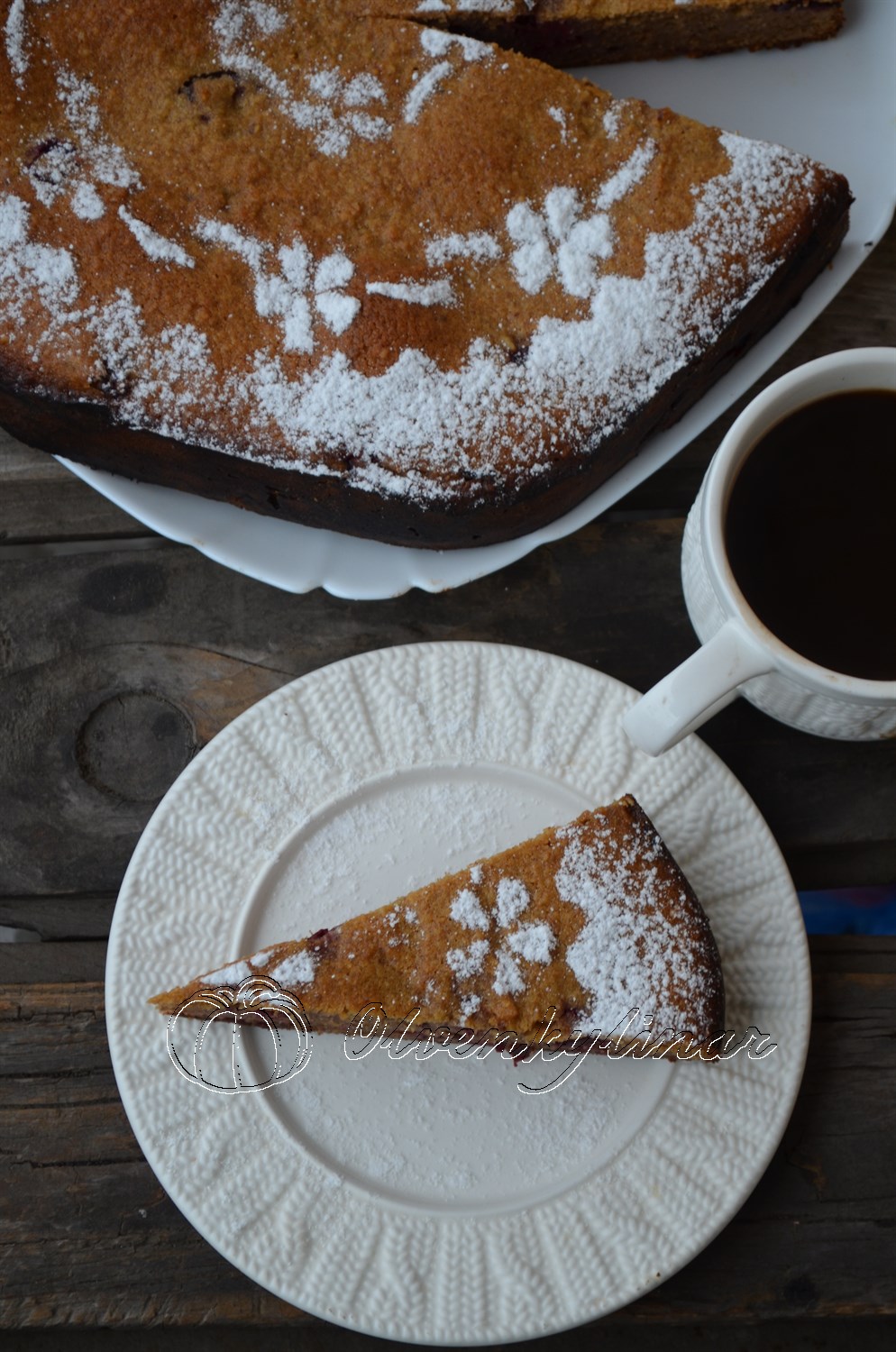 Інгредієнти: 200 г масла, 200 г цукру, 2 жовтки, 8 яєць, 200 г змелених грецьких горіхів, цедра з 1 лимона, 1 ч. л. кориці, 1 склянка замороженої чи свіжої вишні без кісточок.
