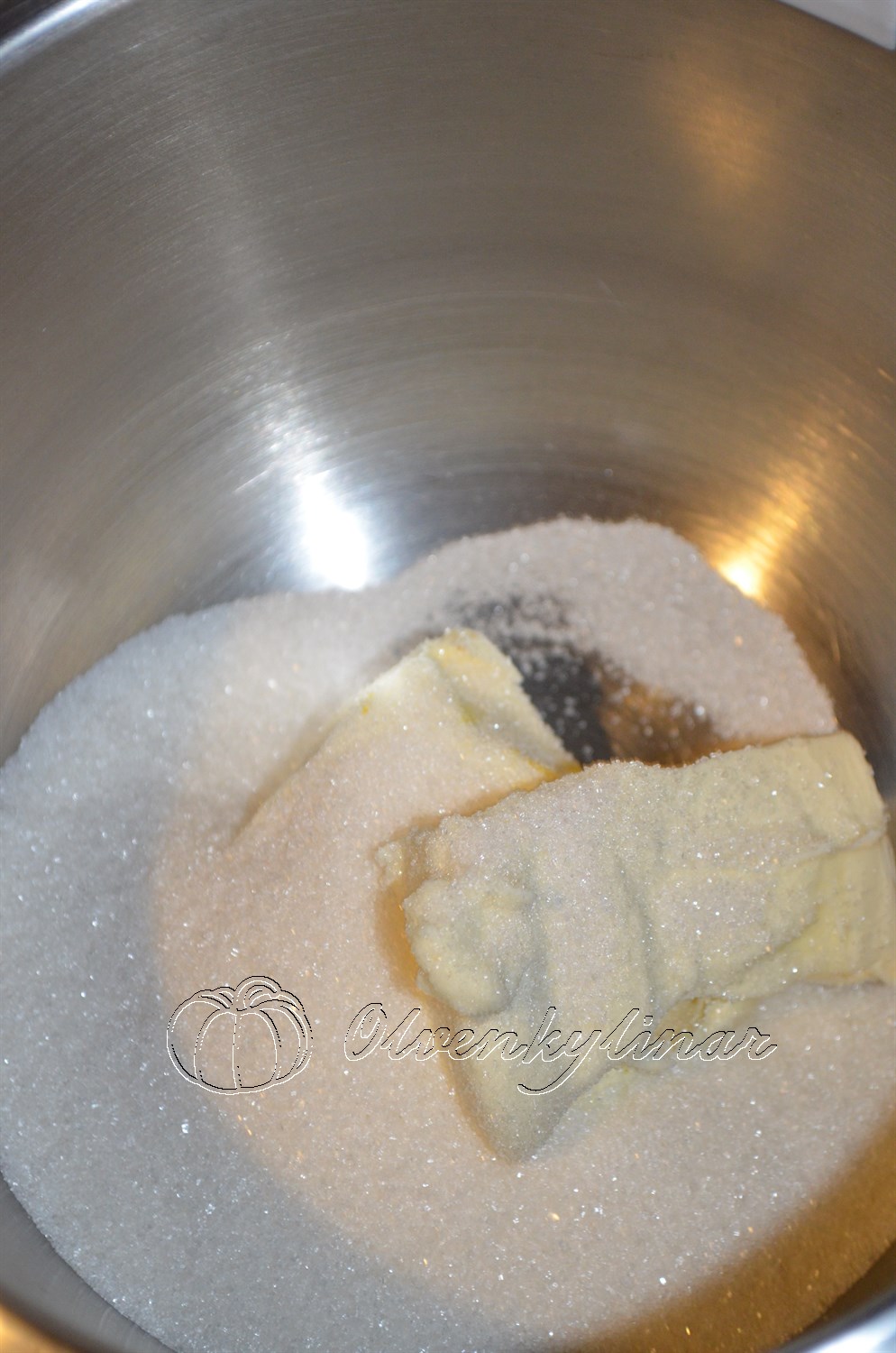 За традицією на початку опису приготування, наводжу оригінальний рецепт: “20 дека масла розтерти із 20 деками цукру, 2 жовтками, 8 яйцями і 20 деками змелених мікдалів. Коли маса гладка додати цитринової шкірки, ложочку цинамину, 20 дека тертої булки або 20 дека булки намоченої в молоці і добре витисненої, в кінці склянку сухих вишень (конфітюри без соку). Вимішати і спечи як звичайно”.