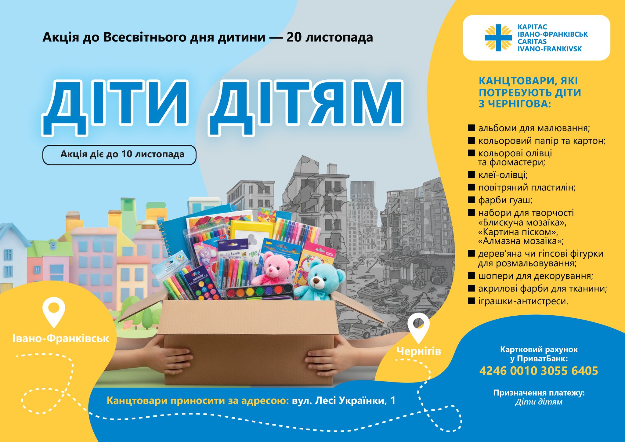 Цьогоріч “Карітас Івано-Франківськ” долучається до всеукраїнської акції «Діти дітям», ініційованої Caritas Ukraine. Франківська організація допомагатиме дітям, якими опікується “Карітас Чернігів”.