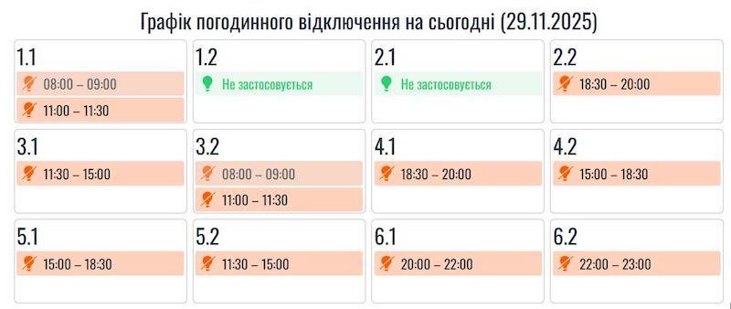 У суботу, 29 листопада, на Прикарпатті будуть діяти графіки погодинних вимкнень світла.