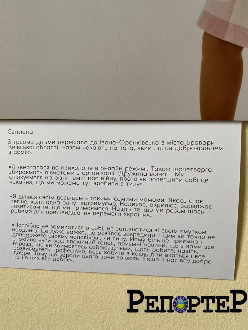 Це не має робити нас слабкими, а навпаки, ми маємо бути сильними, – говорить Марина. – Фотовиставка – це була можливість кожної поділитися своєю історією. Вони були дуже щирі та відкриті в тому, як вони зараз проживають свій досвід. І в кожній фотосесії ми питали в героїнь поради для тих, хто чекає близьких, як варто себе підтримувати, що ми можемо для себе робити.