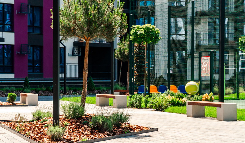 І хоча будівництво ще триває, територія житлового району Manhattan вже облаштована та готова для прогулянок, занять спортом та відпочинку. Тут реалізований розкішний просторий двір площею 8 тис. кв. м з дитячими майданчиками, полем для футболу та волейболу, чисельними зеленими зонами, велодоріжками.