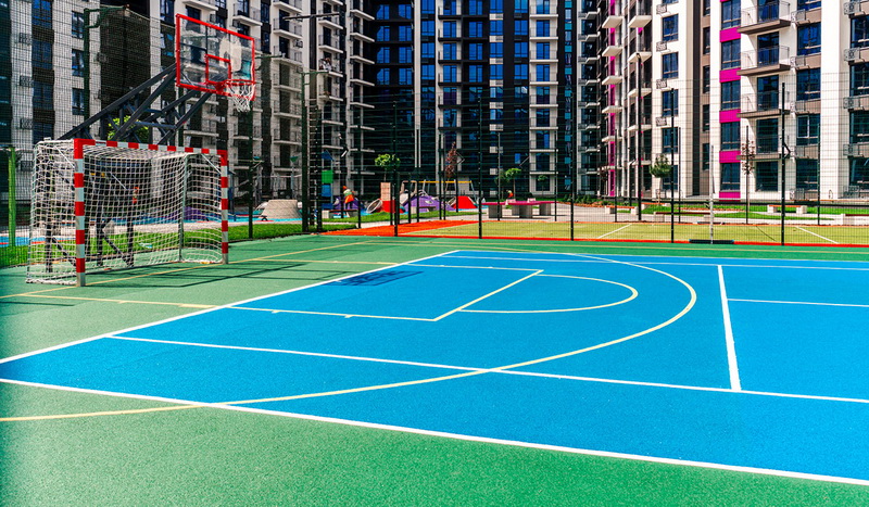 Family Plaza має багату інфраструктуру: 5 спортивних майданчиків та 2 великі ігрові майданчики для дітей.