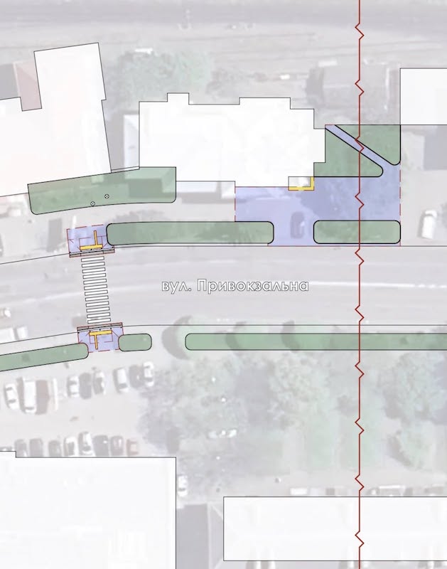 - Встановити пішохідний світлофор на переході навпроти центрального входу до залізничного вокзалу — для безпечного, контрольованого переходу пішоходів та впорядкування руху транспорту.