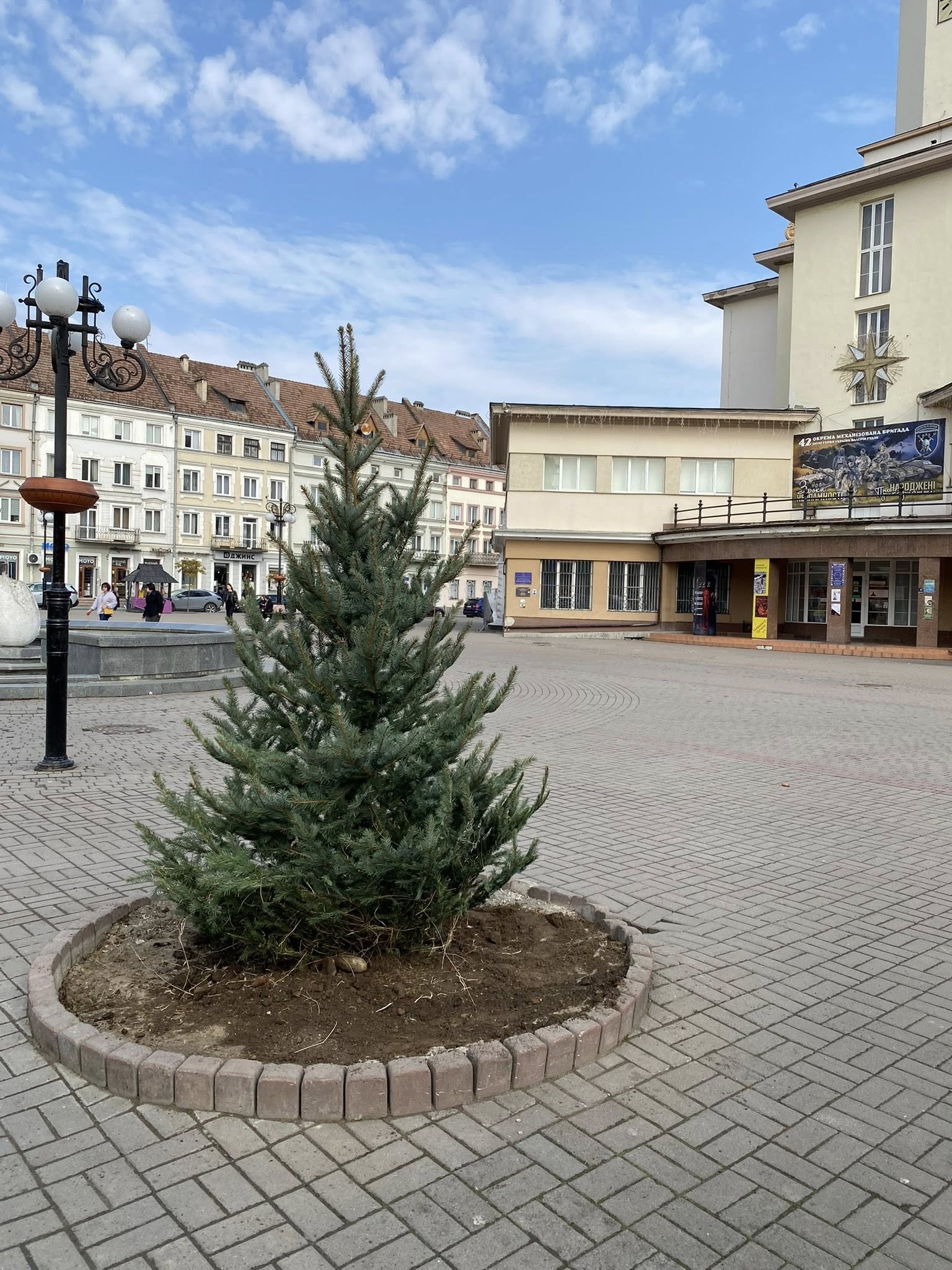 На площі Ринок замінили зрізані минулого року ялини. Тепер біля Ратуші ростуть 5 нових ялинок та 2 кулясті клени.