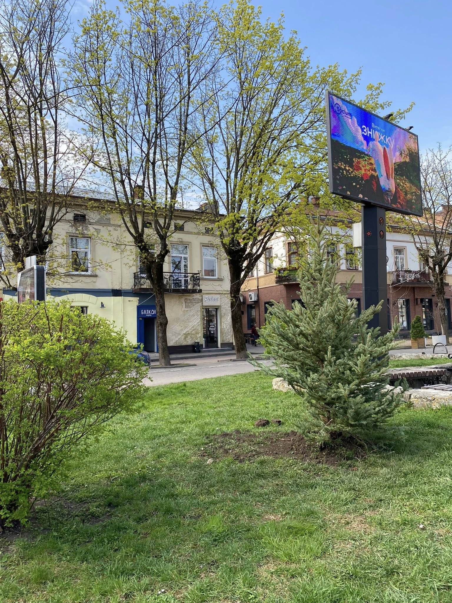 Раніше на площі Ринок довелося прибрати дві старі ялини, що стали сухостоями. Тепер на їхньому місці з’явилося одразу сім нових саджанців: п’ять ялинок та два кулясті клени. Таким чином кількість дерев на цій ділянці не просто відновили, а й збільшили.