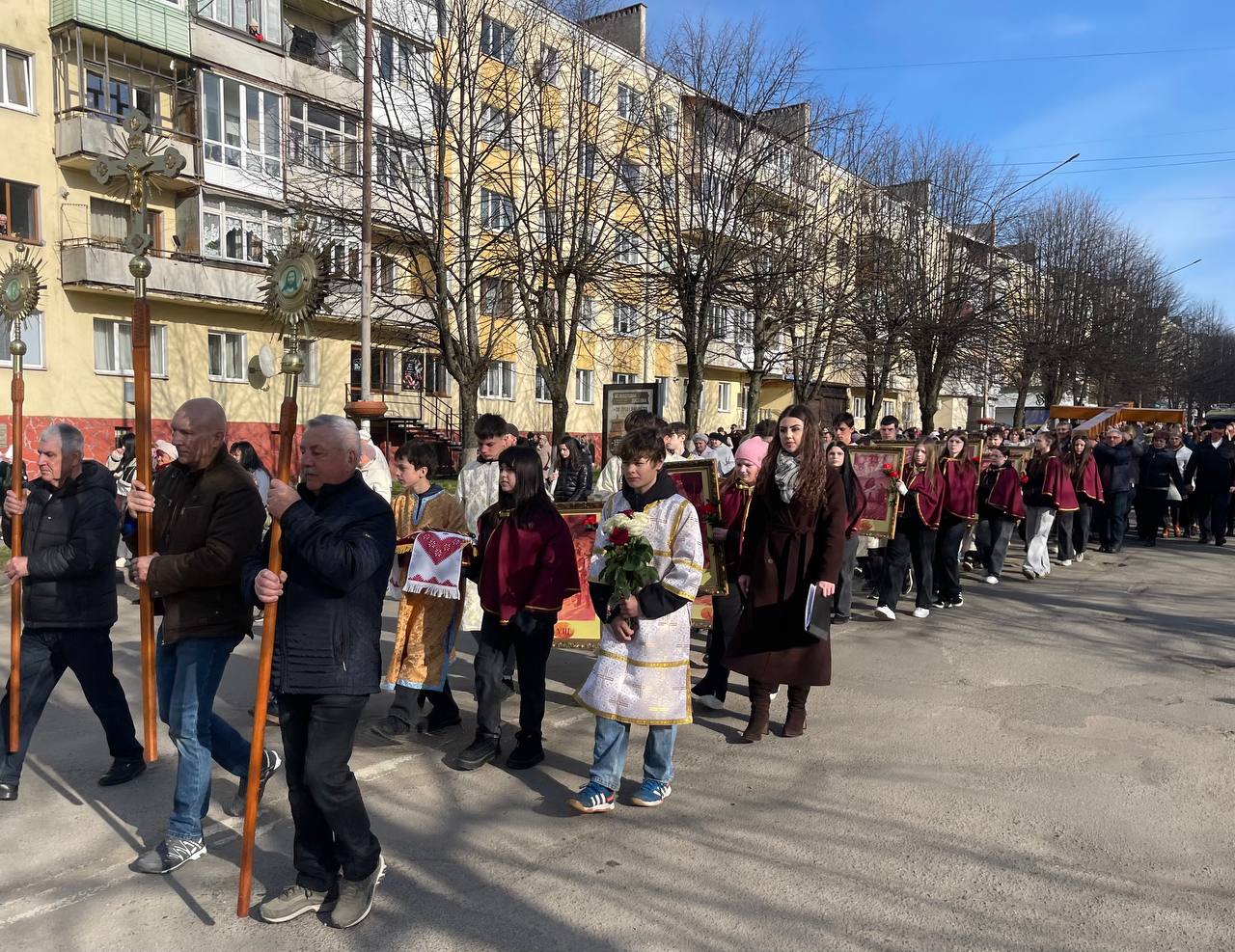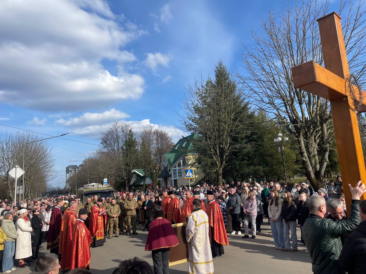 Хресна дорога зібрала численну спільноту: священників протопресвітеріату, військовослужбовців, родини загиблих героїв, представників влади, освітян, медиків та мешканців міста й околиць.