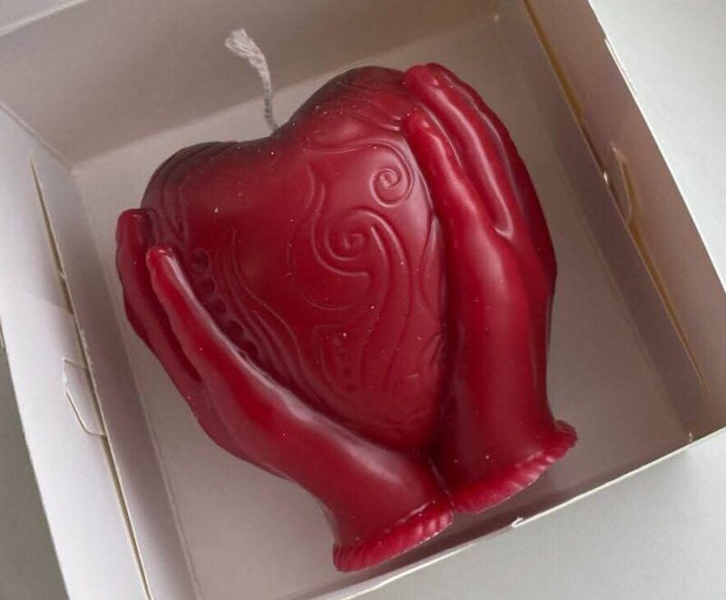 Нещодавно ми отримали парафін, але не звичайний, білий, а червоний і ароматизований. Тому і вирішили, що з нього можна зробити щось цікаве до Дня святого Валентина, — розповідає Іванна Коцан. — Замовили форми, коробки. Від благодійників отримали гніт і почали працювати. Знайомі заливають свічки, а ми із невісткою пакуємо і готуємо до продажу.