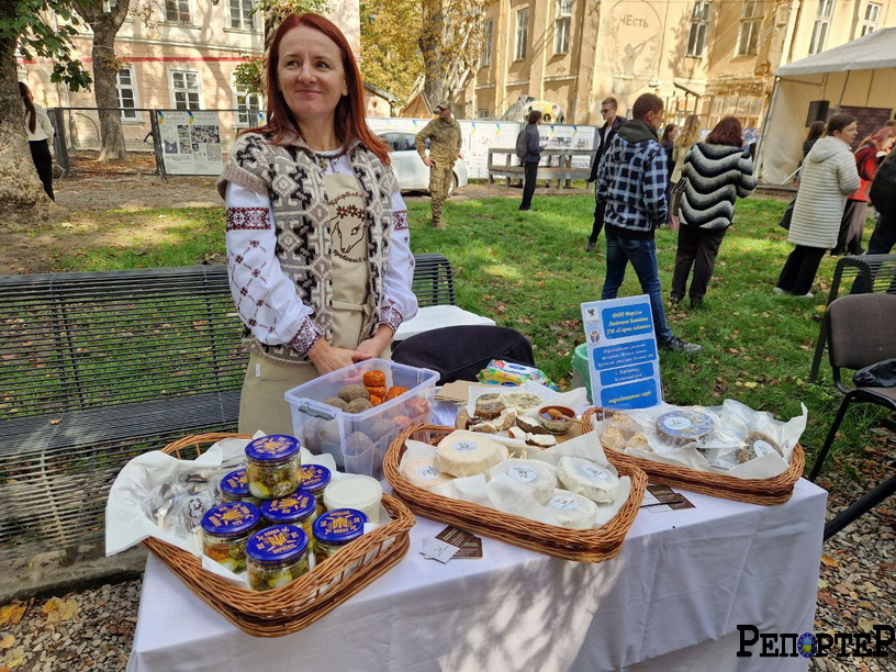 Людмила Фіголь приїхала на ярмарок з села Вербовець, що на Косівщині. Вона презентує сімейну справу «Сирна забавка».