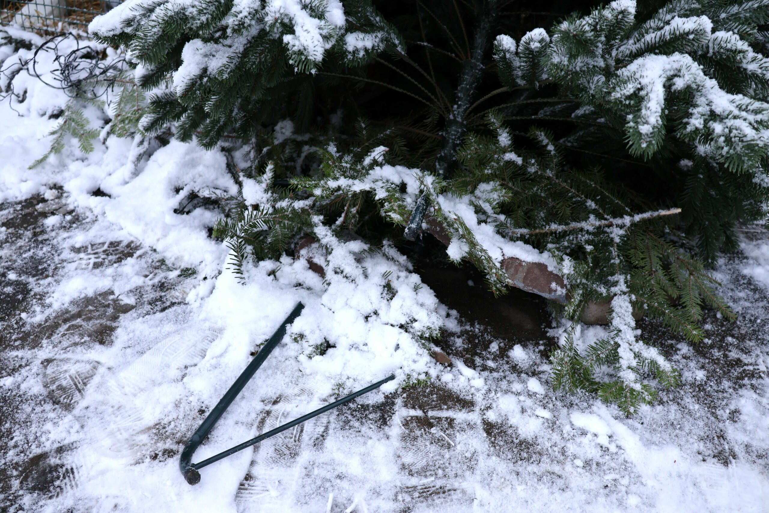 Як повідомили у Заболотівській селищній раді, ялинка була надійно закріплена бетонними плитами та дротами, тому повністю винести її зловмисникам не вдалося. Водночас конструкцію серйозно пошкодили, з ялинки викрали гірлянду, а ще одну — варварськи вирвали з шопки.