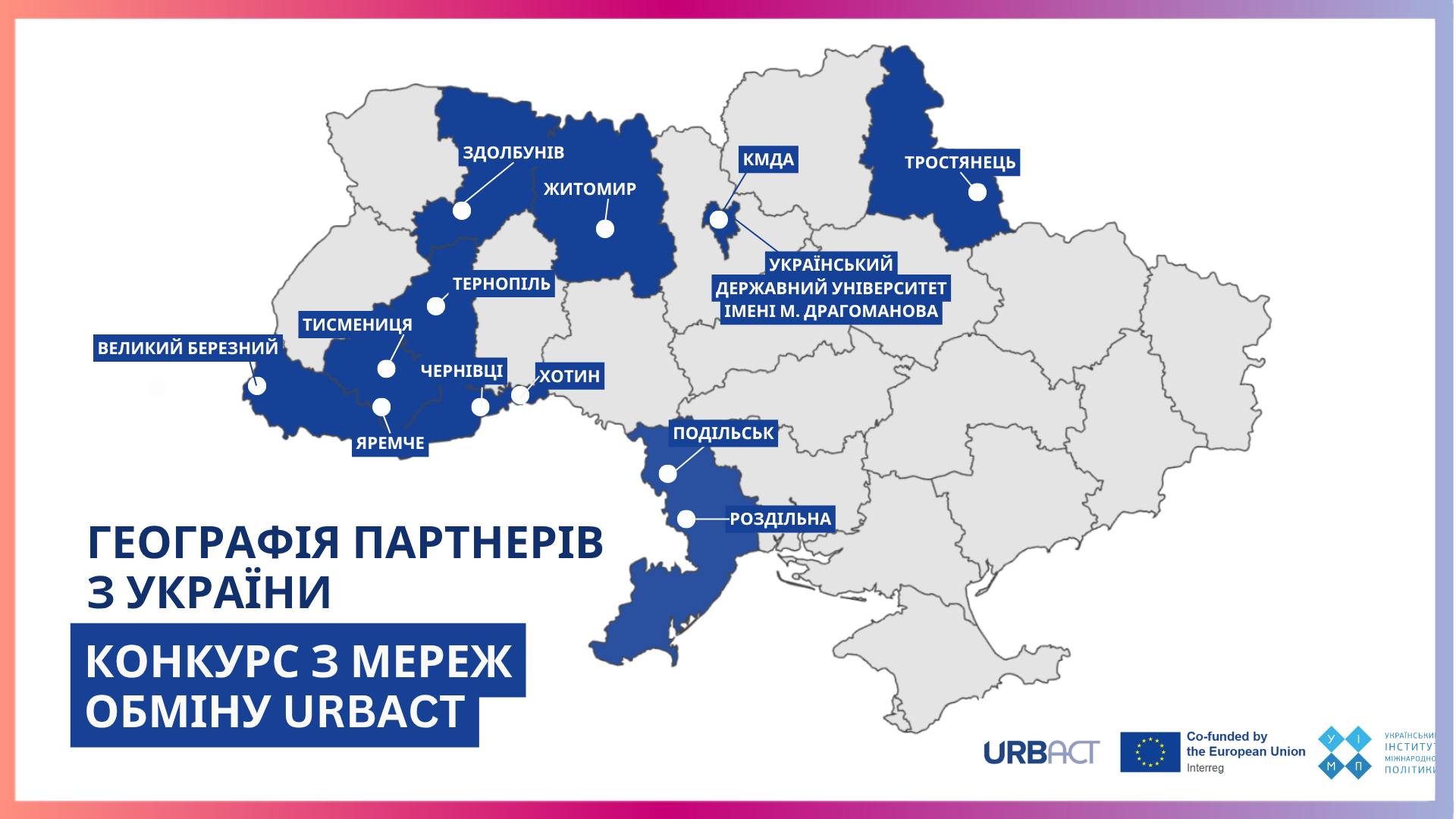 Українські партнери вперше взяли участь у конкурсі Мереж обміну програми ЄС UURBACT, який спрямований на створення партнерств для розвитку міст. І аж 14 українських партнерів увійшли до складу 25 переможців конкурсу.